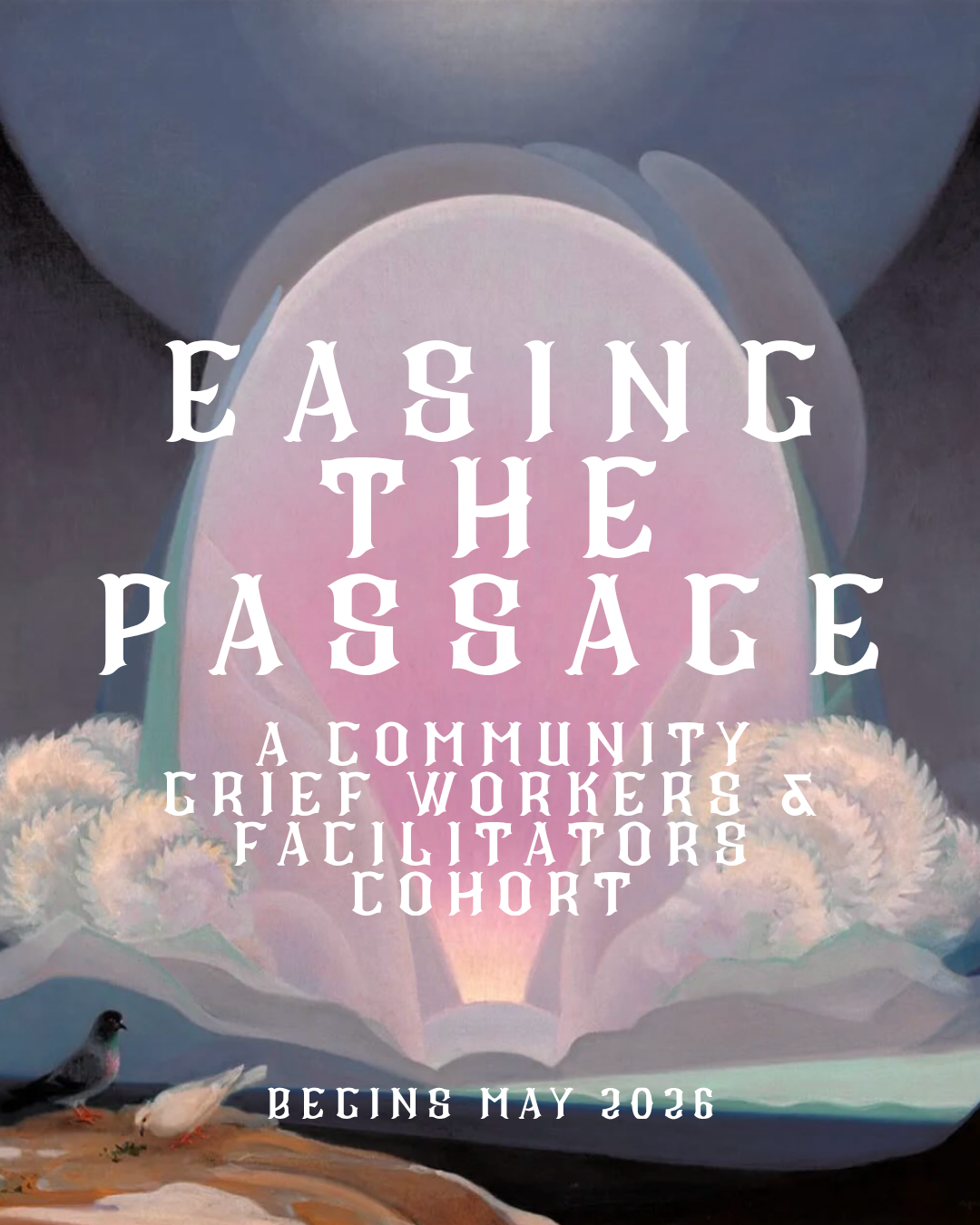 My death and grief care work is community oriented, taking place in group settings in hopes of helping to weave deeply attuned and resourced communities who love, care, dream, and create courageously in times of change and grief.